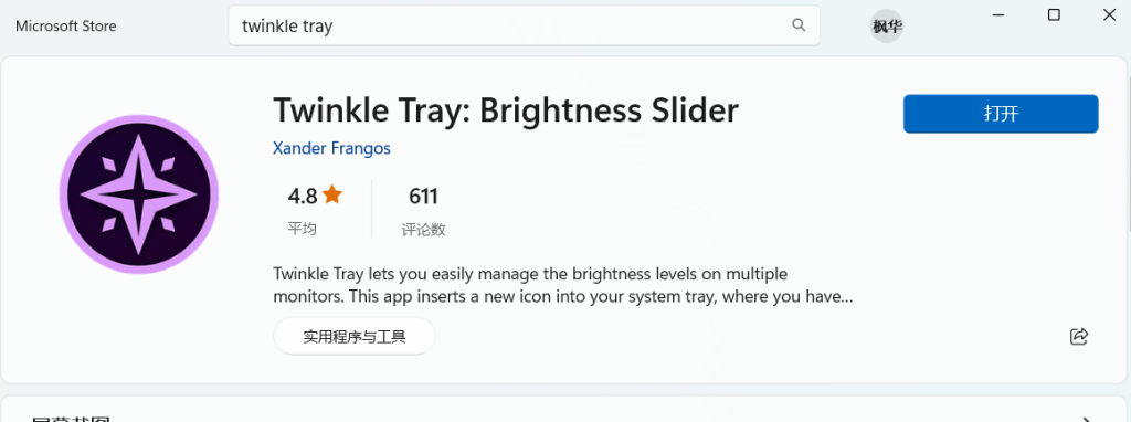 这时候需要安装一个驱动(软件)“twinkle tray”