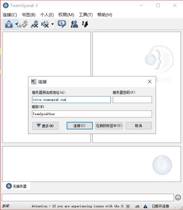点击连接,输入服务器地址和密码,自己的昵称(自己取),点击连接