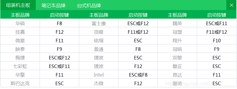 7、来到需要装系统的电脑,开机后立刻狂按F8进入bios,不同主板都不一样,请看下图